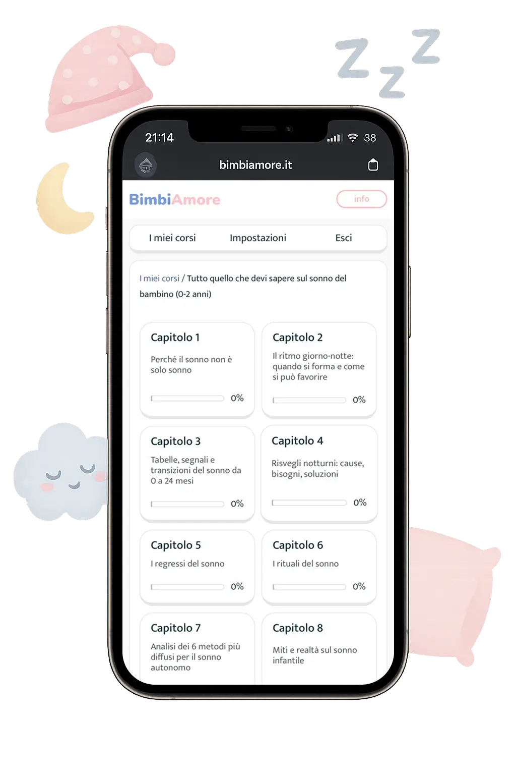 Non offriamo soluzioni magiche, ma ti aiutiamo a comprendere a fondo come si sviluppa il sonno nei primi due anni di vita, come accompagnare il bambino nel passaggio dall’addormentarsi in braccio alla sua autonomia, e come rafforzare il legame di fiducia tra voi.